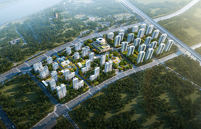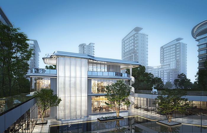 項目對太平河景觀空間進行最大化的導(dǎo)入,以“三月春山,碧水粼波”為核心設(shè)計理念,采用開放式建筑布局,確保項目界面與太平河景觀形成良好互動,分區(qū)分段設(shè)置沿河視線通廊,同時形成東西向景觀漫步系統(tǒng),增加片區(qū)的呼吸空間和街道界面層次。同時項目融入2 大設(shè)計專利,運用高品質(zhì)材料打造全幕墻外裝體系,構(gòu)建城市封面之作,讓人們置身于太平河畔的美好生態(tài)環(huán)境中,感受建筑的質(zhì)感和生命力。
