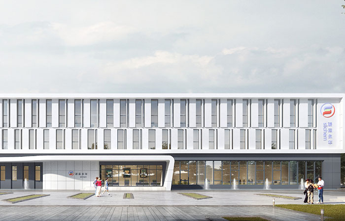本工程為滄州誠志永華科技有限公司新型顯示材料項目,位于滄州渤海新區(qū)臨港經(jīng)濟(jì)技術(shù)開發(fā)區(qū)。定位為現(xiàn)代建筑風(fēng)格,以現(xiàn)代產(chǎn)業(yè)企業(yè)的辦公趨勢和需求為依據(jù),本著加強(qiáng)協(xié)作交流、激化創(chuàng)意思維、促進(jìn)身心健康高效工作環(huán)境的原則,以個性化和以人為本的設(shè)計,塑造現(xiàn)代企業(yè)形象。方案設(shè)計以現(xiàn)代科技、交流共享為主題核心,打破傳統(tǒng)封閉的辦公模式和刻板印象,塑造具有企業(yè)專屬感的標(biāo)識形態(tài)。在滿足基本功能空間之外,打造舒適的交互性空間,進(jìn)一步促進(jìn)各種協(xié)作與交流。在規(guī)劃設(shè)計中,強(qiáng)調(diào)建筑與周邊環(huán)境的有機(jī)融合,注重城市風(fēng)貌建設(shè),同時內(nèi)部打造連貫性景觀,開闊視野。單體設(shè)計形象統(tǒng)一完整,細(xì)部處理簡潔,手法運用注重人性化,開放,友善親和的建筑性格。在處理廠工藝流程上,充分尊重其工藝設(shè)計的功能性要求并在此基礎(chǔ)上注重設(shè)計語言的完善,強(qiáng)調(diào)廠區(qū)的風(fēng)格特征。建構(gòu)筑物在綠色、和諧、美觀之外,結(jié)合科學(xué)、潔凈的概念,在其藝術(shù)的美感之外,保證其標(biāo)志性。
