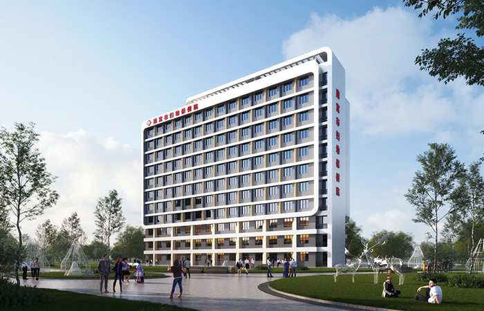 規(guī)劃設(shè)計在現(xiàn)狀建筑西側(cè)植入新建建筑體量,新建建筑與原有建筑形成中軸對稱的總體布局。在病房樓四周,設(shè)置大面積綠地景觀,營造出綠色共享的景觀區(qū)域,與自然為鄰,享受舒適環(huán)境。