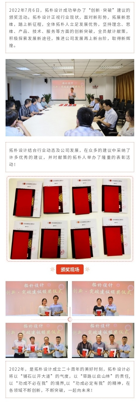 表彰|拓樸設(shè)計(jì)成功舉辦“創(chuàng)新·突破”建議頒獎(jiǎng)活動(dòng)