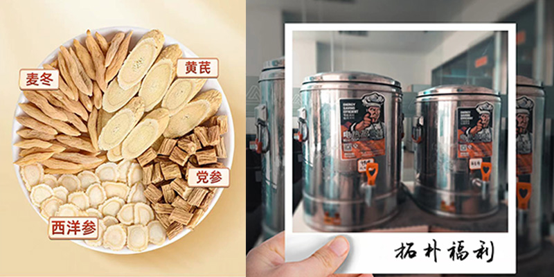 ? 四寶湯茶由黨參、黃芪、麥冬、西洋參精心配制而成,這些中藥材不僅具有很好的清熱解暑效果,還能夠增強(qiáng)身體免疫力,提升員工的身體健康水平。在驕陽似火的夏日,一碗清爽的綠豆湯,一杯養(yǎng)生的四寶湯茶,無疑為員工們送上了一份清涼,也為他們的身體健康筑起了一道堅(jiān)固的防線。