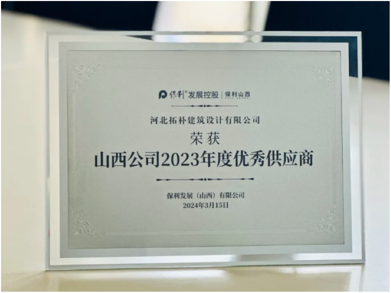 喜報|拓樸設(shè)計山西分公司榮獲“保利發(fā)展2023年度優(yōu)秀供應(yīng)商”獎